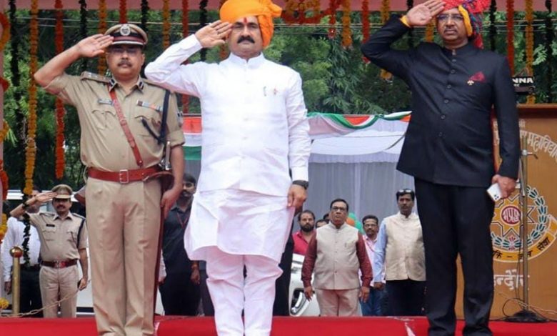 गृहमंत्री डॉ. नरोत्तम मिश्रा ने इंदौर में किया ध्वजारोहण, परेड की सलामी ली