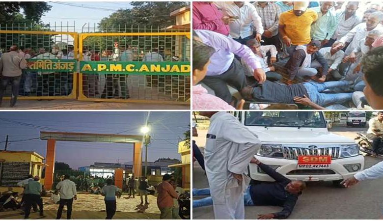 खरीदी शुरू कराने की मांग पर अड़े किसानों ने मंडी के गेट पर जड़ा ताला, अधिकारियों को रोका