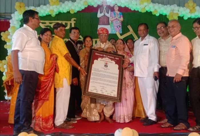 7 जुलाई से धार में चल रहे सिद्धचक्र मंडल विधान का 14 जुलाई को समापन अवसर पर दिगम्बर जैन समाज धार ने लाभार्थी परिवार के मुखिया नरेश गंगवाल को समाज रत्न की उपाधि से सम्मानित किया। समाज अध्यक्ष अशोक कासलीवाल ने नरेश गंगवाल व उनके परिवार का समाज के हर कार्य में अग्रणि रहने तथा सिद्धचक्र मंडल विधान के प्रारंभ से लेकर अंत तक लाभार्थी बनने का ब्यौरा देते हुए उनका शाल, श्रीफल, माला व पगड़ी पहनाकर स्वागत किया। इसके साथ ही उन्हें समाज की और से अभिनंदन पत्र भी भेंट किया। अभिनंदन पत्र का वाचन समाज सचिव राजकुमार रावका ने किया। अभिनंदन पत्र भेंट करने के दौरान समाज के पदाधिकारी, महिला मंडल, युवा संगठन, युथ क्लब, सोशल ग्रुप बाहुबली, महिला महासमिति के सदस्यगण मौजूद थे।