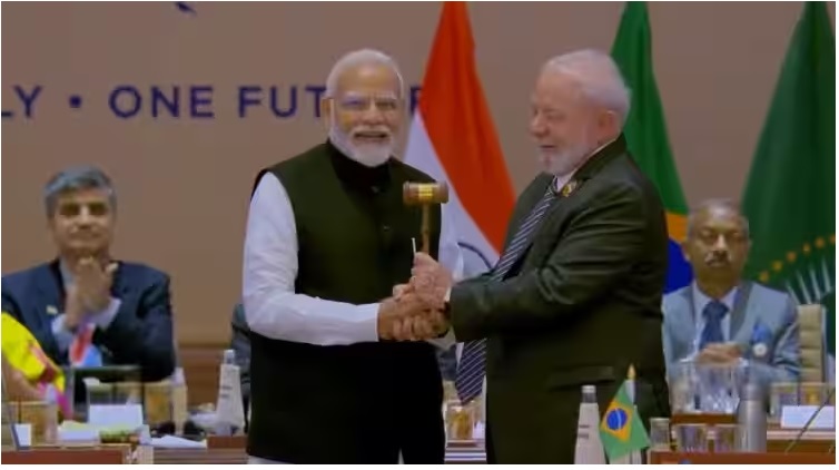 प्रधानमंत्री नरेंद्र मोदी ने ब्राजील के राष्ट्रपति लुइज इनासियो लूला दा सिल्वा को जी20 की अध्यक्षता की जिम्मेदारी सौंपी। पीएम ने कहा कि ब्राजील के राष्ट्रपति लुइज इनासियो को मैं हार्दिक शुभकामनाएं देता हूं और उन्हें जी20 की अध्यक्षता सौंपता हूं।