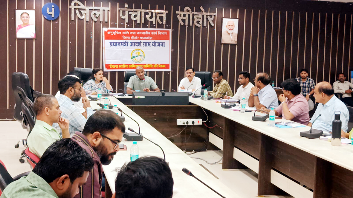 कलेक्टर बालागुरू के. की अध्यक्षता में जिला पंचायत सभाकक्ष में प्रधानमंत्री आदर्श ग्राम योजना अंतर्गत जिला अभिसरण समिति की बैठक हुई। इसमें जिला पंचायत सीईओ सर्जना यादव, अपर कलेक्टर वृंदावन सिंह सहित संबंधित अधिकारी उपस्थित थे। बैठक में जानकारी दी गई कि प्रधानमंत्री आदर्श ग्राम योजना के अंतर्गत सीहोर जिले के 29 ग्रामों को शामिल किया गया है, जिनमें आष्टा के 17, सीहोर के 5, इछावर के 5, बुधनी और भैरूंदा का एक-एक गांव शामिल है। चयनित ग्रामों में ग्राम कान्याखेड़ी, भानाखेड़ी, पटारिया चौहान, देवनखेडी, खेनियापुरा, भाऊखेड़ा, नवरंगपुर, गाजना, जताखेड़ा, भेरूपुर, ईसईलखेड़ी, परोलिया, बुरानाखेड़ी, लच्छीरामजीपुरा, पागरी, शोभाखेड़ी, अरनिया दाउद, बिजौरा, रामपलासी, डेंडी, तोरनिया, खारपा, कुल्हाडी, लसुडिया गौंडी, जाटखेड़ी, हिमतपुरा, लसुड़िया शेखु, सनखेड़ी और श्यामुगांव शामिल है।