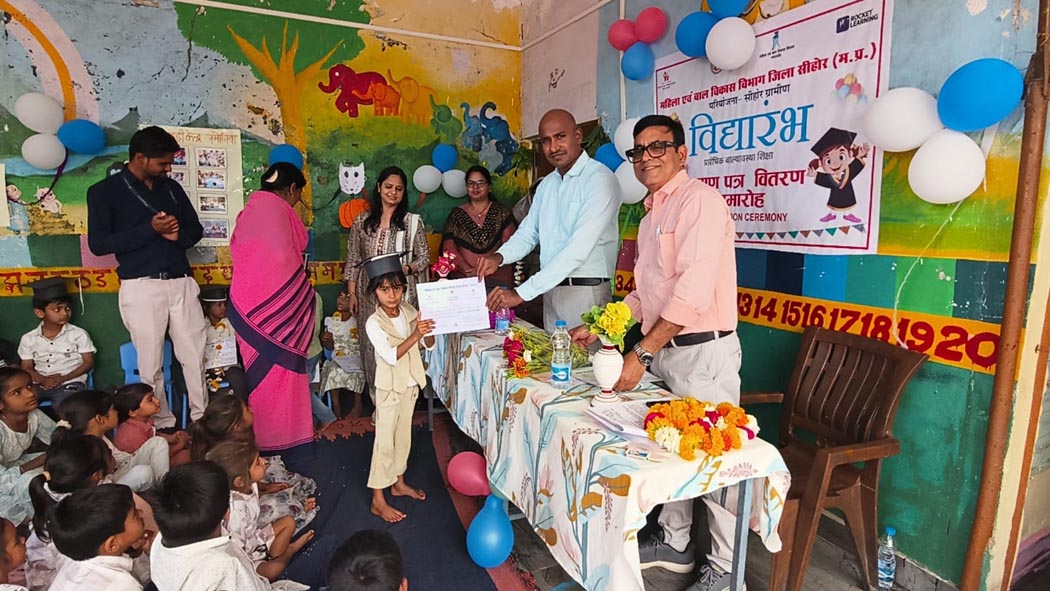 सीहोर। जिले के आंगनबाड़ी केंद्रों में खेल कूद और अनौपचारिक शिक्षा प्राप्त कर रहे बच्चों के लिए आज का दिन बेहद खास रहा। महिला एवं बाल विकास विभाग द्वारा जिले की सभी आंगनबाडिय़ों में विद्यारंभ प्रमाण पत्र वितरण और ग्रेजुएशन सेरेमनी का आयोजन किया गया। इस कार्यक्रम के माध्यम से 5 से 6 वर्ष की आयु के बच्चों को औपचारिक स्कूली शिक्षा में प्रवेश के लिए तैयार किया जा रहा है।