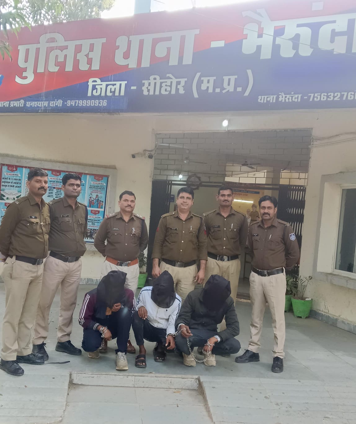 सीहोर। राहजनी और झपटमारी की वारदातों को अंजाम देने वाले एक शातिर गिरोह का भैरुंदा पुलिस ने पर्दाफाश किया है। पुलिस ने तत्परता दिखाते हुए एक बाल अपचारी सहित चार आरोपियों को दबोच लिया है। इनके पास से लूटी गई चांदी की चेन, पर्स, नगद राशि और वारदात में इस्तेमाल की गई स्प्लेंडर मोटरसाइकिल भी जब्त की गई है।