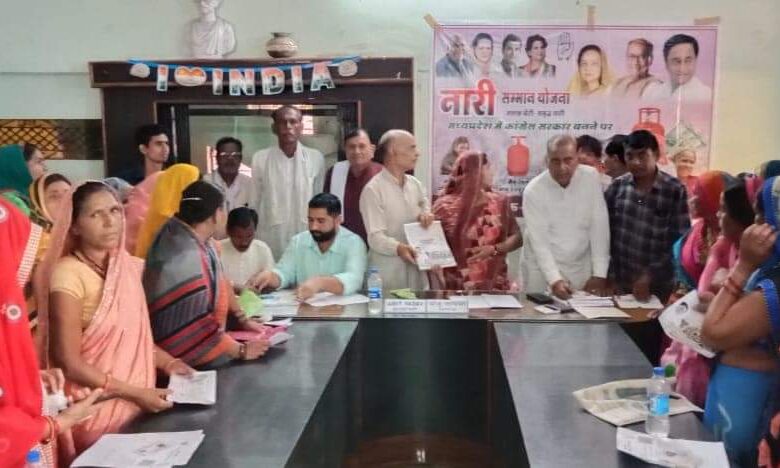 रेहटी। चुनावी साल में प्रदेश की महिलाओें को लेकर जहां प्रदेश सरकार द्वारा लाड़ली बहना योजना शुरू की गई है तो वहीं कांग्रेस ने भी नारी सम्मान योजना को लेकर शुरूआत की है। इसके लिए जगह-जगह शिविर लगाकर नारी सम्मान योजना के आवेदन भरवाए जा रहे हैं। इसी कड़ी में ब्लॉक कांग्रेस रेहटी-बुधनी द्वारा सलकनपुर में नारी सम्मान योजना के फॉर्म भरे गए। नारी सम्मान योजना के ब्लॉक प्रभारी विष्णु प्रसाद ठाकुर ने बताया कि सलकनपुर में लगभग 500 महिलाओं के नारी सम्मान योजना के फॉर्म भरे गए हैं। पूरे ब्लॉक में लगातार फॉर्म भरे जा रहे हैं। कांग्रेस की सरकार बनने पर नारी सम्मान योजना के अंतर्गत सभी महिलाओं को 1500 रुपए प्रतिमाह दिए जाएंगे, साथ ही 500 रूपए में गैस का सिलेंडर दिया जाएगा। 100 यूनिट तक बिजली फ्री दी जाएगी 200 यूनिट तक बिजली पर आधा चार्ज लगेगा। इस अवसर पर नारी सम्मान योजना के ब्लॉक प्रभारी विष्णु प्रसाद ठाकुर, उप ब्लॉक कांग्रेस अध्यक्ष प्रेम नारायण गुप्ता, पूर्व ट्रस्ट अध्यक्ष मंगल सिंह ठाकुर, कार्यकारी ब्लाक अध्यक्ष राधेकृष्ण, नगर जिला कांग्रेस सचिव अनिरुद्ध दुबे, युवा कांग्रेस नेता अमित पटेल, सलकनपुर सरपंच मंजू दायमा, महिला कांग्रेस नेत्री दीप्ति कीर, पूर्व सरपंच विपत सिंह उइके सहित कांग्रेस के कार्यकर्ता एवं क्षेत्र की महिलाएं मौजूद रहीं।
