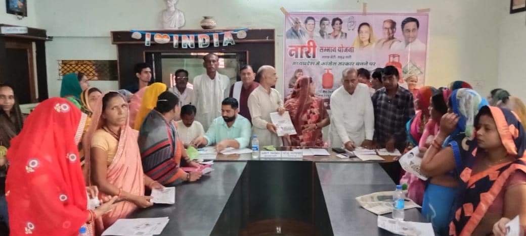 कांग्रेस भरवा रही नारी सम्मान योजना के फॉर्म