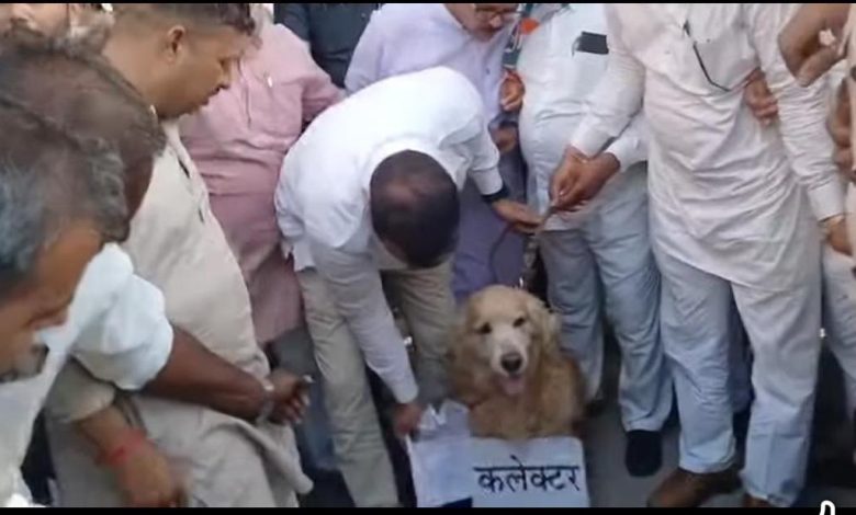 कांग्रेस का प्रदर्शन, कलेक्टर ने नहीं दिए दर्शन तो कुत्ते को सौंपा ज्ञापन