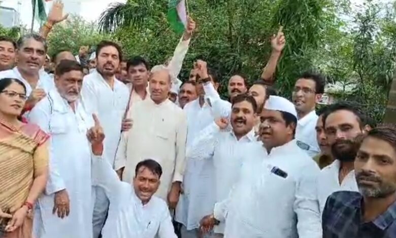 सीएम के गढ़ में कांग्रेस का हल्ला बोल, मुंह के आगे हांडी, पीठ पर झाड़ू बांधकर किया प्रदर्शन
