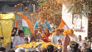 - इछावर विधानसभा में प्रवेश के दौरान जेसीबी मशीन से की फूलों की वर्षा, जगह-जगह हुआ जमकर स्वागत-सत्कार