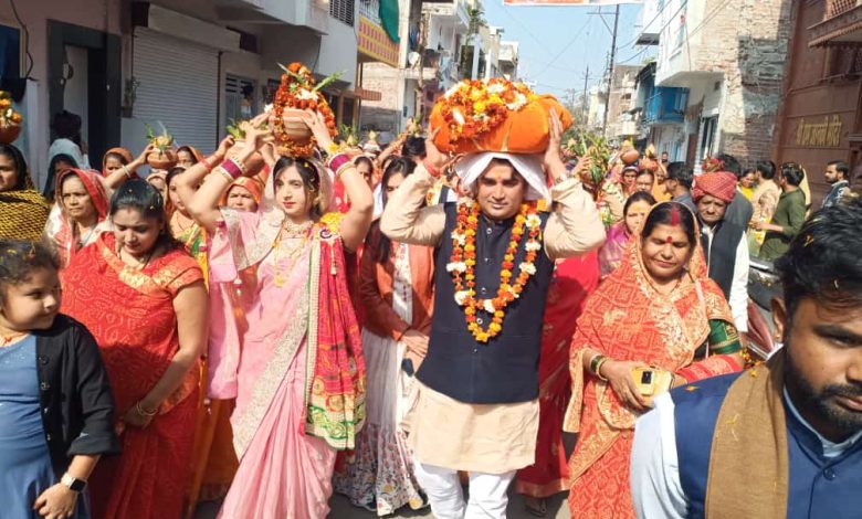तीन घंटे तक कलश यात्रा का श्रद्धालुओं ने किया पुष्प वर्षा कर स्वागत