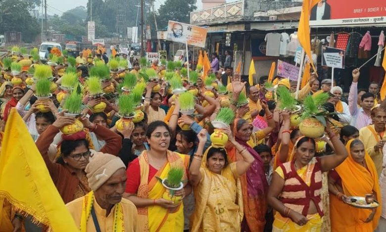 सीहोर। अखिल विश्व गायत्री परिवार द्वारा बुधनी नगर के दशहरा मैदान में चार दिवसीय 51 कुण्डीय राष्ट्र शौर्य समृद्धि गायत्री महायज्ञ का शुभारम्भ कलश यात्रा के साथ हुआ। युवा संयोजक मनोहर सिंह दांगी ने बताया कि गायत्री महायज्ञ की कलश यात्रा का शुभारंभ खेड़ापति हनुमान मंदिर से हुआ। यहां से यात्रा नगर भ्रमण करती हुई गायत्री महायज्ञ आयोजन स्थल तक पहुंचीए जहां गायत्री परिजनों ने पुष्प वर्षा कर कलश यात्रा का भव्य स्वागत किया। शांतिकुंज हरिद्वार से आई प्रज्ञा टोली के टोली नायक सूरज सिंह अमृत ने इस धर्ममय कार्यक्रम के उद्देश्य और स्वरूप पर विस्तार से प्रकाश डाला।