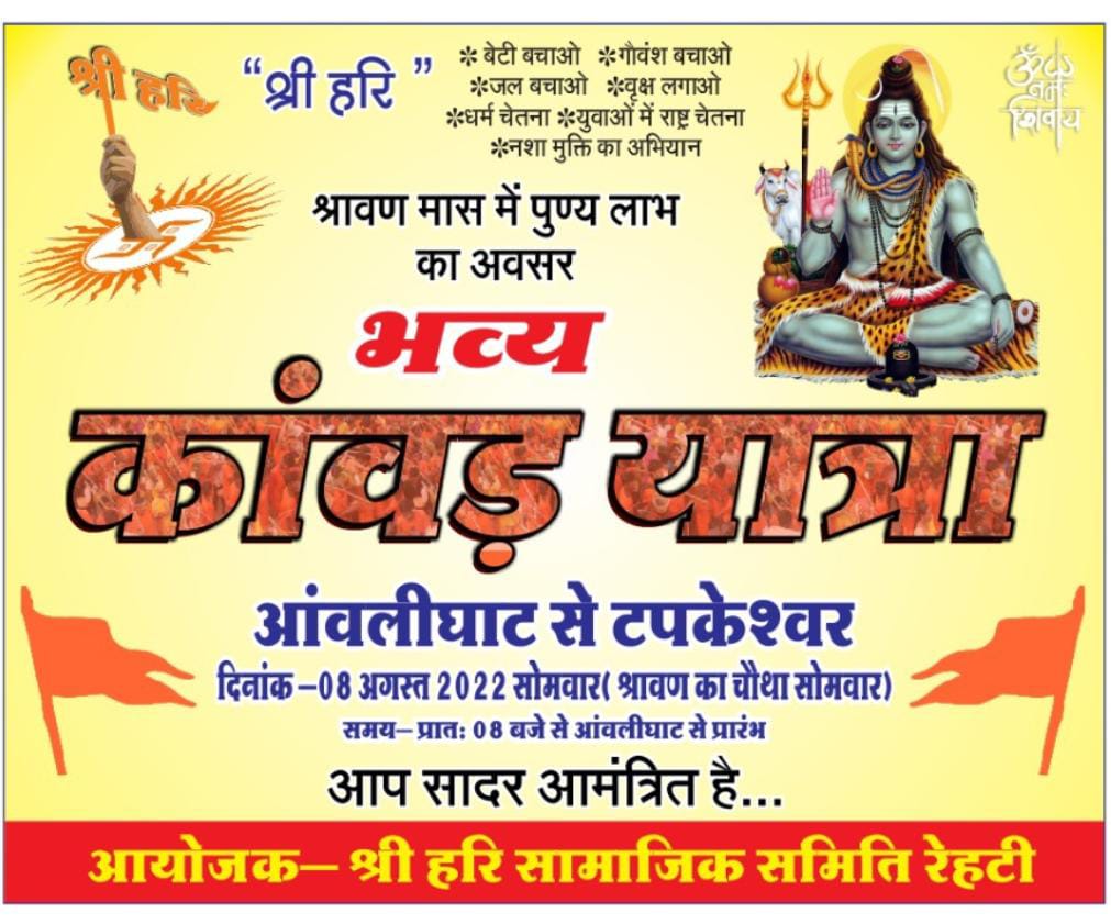 रेहटी। सावन मास में धार्मिक कार्यक्रमों के आयोजन हर तरफ चल रहे हैं। इसी कड़ी में रेहटी की श्रीहरि सामाजिक समिति द्वारा भी भव्य कावड़ यात्रा की तैयारियां की जा रही है। कावड़ यात्रा के संबंध में जानकारी देते हुए युवा मोर्चा के जिला उपाध्यक्ष एवं शिवभक्त