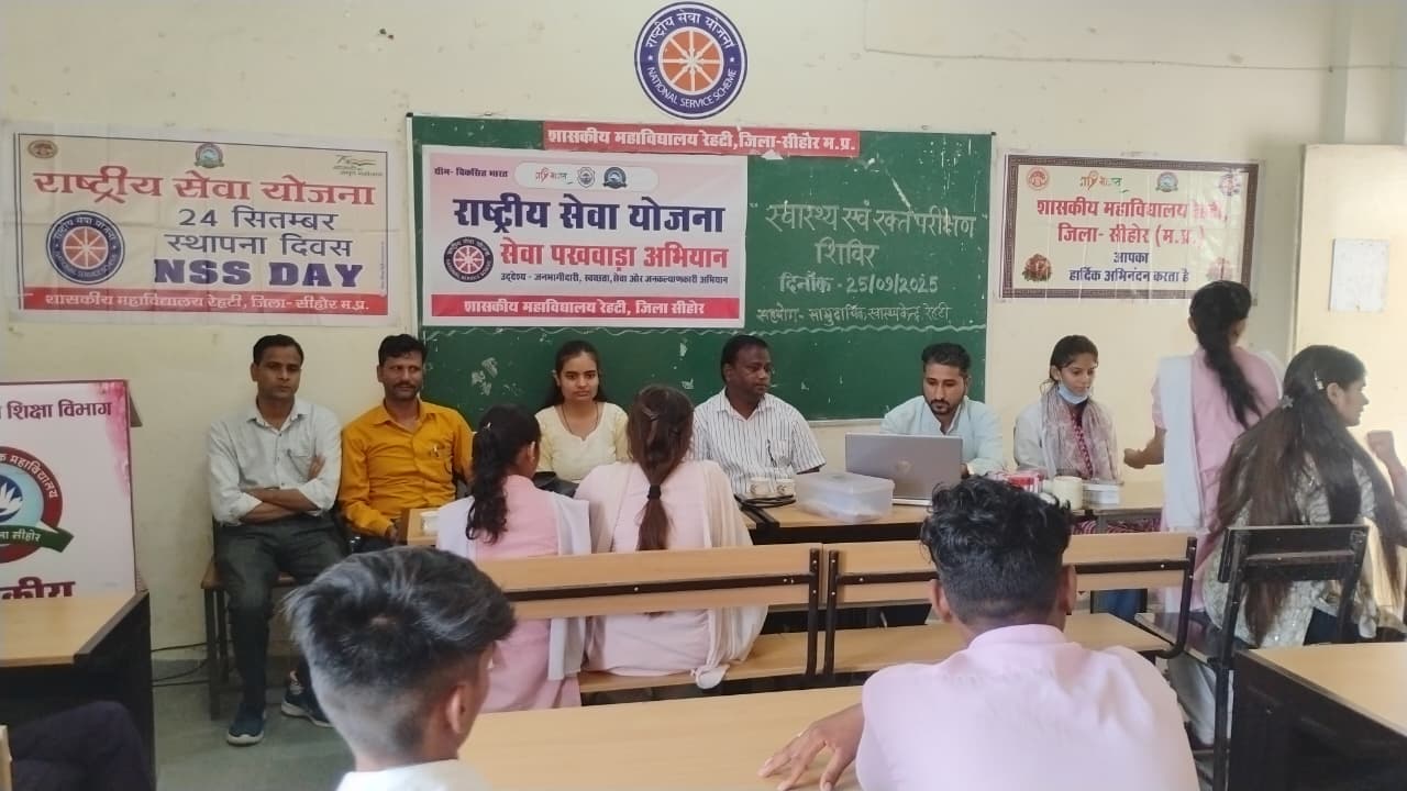 रेहटी। रासेयो के स्थापना दिवस एवं सेवा पखवाड़ा अभियान के अंतर्गत शासकीय महाविद्यालय रेहटी की राष्ट्रीय सेवा योजना इकाई द्वारा स्वास्थ्य एवं रक्त परीक्षण शिविर का आयोजन किया गया। यह आयोजन महाविद्यालय की प्राचार्य डॉ अंजलि गढ़वाल के मार्गदर्शन में हुआ, जिसमें स्वास्थ्य केंद्र रेहटी के मेडिकल ऑफिसर डॉ रामनाथ धूसिया, डॉ निशा यादव, करम सिंह बारेला, लैब टेक्नीशियन एवं सहयोगी स्टाफ सुनील चौहान तथा ओमिका उपस्थित रही। इनके द्वारा लगभग 40 विद्यार्थियों एवं स्टाफ का स्वास्थ्य एवं रक्त परीक्षण किया गया तथा मेडिकल ऑफिसर के द्वारा विद्यार्थियों को सिकल सेल एनीमिया की जानकारी प्रदान की गई। इस दौरान बताया गया कि शरीर में हम आयरन की कमी को कैसे पूरा कर सकते हैं। कार्यक्रम का आयोजन राष्ट्रीय सेवा योजना के कार्यक्रम अधिकारी डॉ पुनीत कुमार मालवी, डॉ दीपक रजने, राजाराम रावते एवं महाविद्यालय स्टाफ की उपस्थिति में आयोजित किया गया। इससे पहले सेवा पखवाड़ा अभियान के अंतर्गत राष्ट्रीय सेवा योजना के स्वयंसेवकों के द्वारा महाविद्यालय परिसर से नगर पंचायत रेहटी के बाजार से होते हुए लोगों को जागरूक करने हेतु स्वच्छता रैली का आयोजन किया गया। इस दौरान राहगीरों को स्वच्छता के प्रति नारे लगाकर जागरुक किया गया। इसमें प्रकृति के दुश्मन तीन, पाऊच पन्नी पॉलिथीन… हम सबने यह ठाना है, भारत को स्वच्छ बनाना है,,, जैसे नारों के साथ जागरुक करते हुए इसे दूर करने का आवाह्न किया। इस अवसर पर कार्यक्रम अधिकारी डॉ पुनीत कुमार मालवी, डॉ दीपक रजने, डॉ मनमोहन द्विवेदी, अरुण सगवालिया, डॉ पूनम सोनी, डॉ अरविंद कुमार तथा स्वयंसेवक दुर्गा एक्के, नीलू धुर्वे, चैन सिंह बारेला, प्रियंका मेहरा, कल्पना सेन, दुर्गेश यादव उपस्थित रहे।