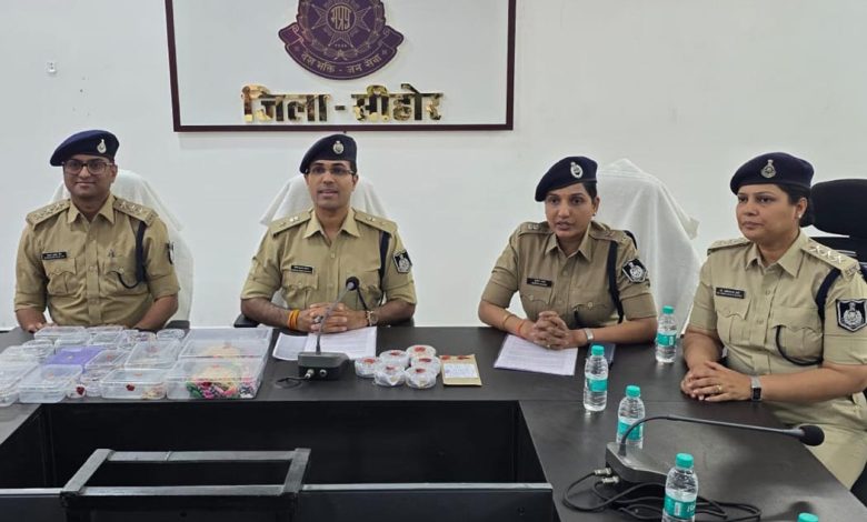 सीहोर। शहर की नेहरू कॉलोनी में सूने मकान को निशाना बनाने वाले चोर गिरोह का पुलिस ने पर्दाफाश कर दिया है। पुलिस ने इस मामले में एक महिला सहित चार आरोपियों को गिरफ्तार किया है। आरोपियों के कब्जे से चोरी किए गए सोने के जेवरात और नगदी बरामद की गई है, जिसकी कुल कीमत लगभग 8 लाख रुपये आंकी गई है।
