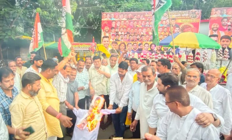 मंत्री विजयवर्गीय के बयान की आंच सीहोर भी आई, कांग्रेस ने फूंका पुतला