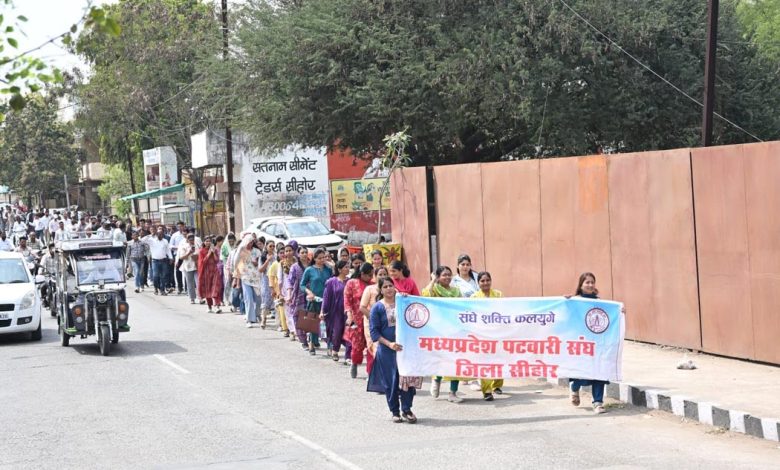 सीहोर। जिले के पटवारी इन दिनों अत्यधिक कार्यभार और लंबित आर्थिक मांगों को लेकर आक्रोशित हैं। शुक्रवार को मध्य प्रदेश पटवारी संघ के बैनर तले बड़ी संख्या में पटवारियों ने टाउनहॉल से कलेक्ट्रेट तक विरोध मार्च निकाला और अपनी समस्याओं के निराकरण के लिए कलेक्टर के नाम ज्ञापन सौंपा।
