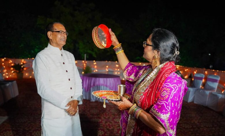 केंद्रीय कृषि मंत्री शिवराज सिंह चौहान और उनकी पत्नी साधना सिंह चौहान ने भोपाल स्थित अपने निवास पर पारंपरिक तरीके से करवा चौथ का पर्व मनाया। केंद्रीय मंत्री ने खुद पूजन-अर्चन किया और करवा चौथ की पौराणिक कथा सुनाई। इसके बाद उन्होंने पत्नी साधना सिंह को पानी पिलाकर उनका व्रत तुड़वाया। हालांकि मामा के निवास पर इस बार सबसे बड़ी खुशी का पल रहा, जब उनकी दोनों बहुओं व्रत रखा।
