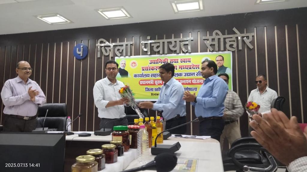 सीहोर। प्रधानमंत्री उद्यम उन्नयन योजना (पीएमएफएमई) ऐसी योजना है, जिसके माध्यम से युवा, महिलाएं, पुरूष सहित महिला स्व सहायता समूह अपने सपनों को साकार कर सकते हैं। इस योजना के माध्यम से वे अपना स्वयं का व्यवसाय, यूनिट लगाकर उद्योगपति बन सकते हैं एवं अपना खुद का बाजार डवलप कर सकते हैं। ये योजना युवाओं के सपनों को ऊंची उड़ान देने वाली योजना है। ये बातें जिला पंचायत सीईओ आशीष तिवारी ने कही। वे पीएमएफएमई योजना के तहत एक दिवसीय जिला स्तरीय प्रशिक्षण एवं कार्यशाला में उपस्थित हितग्राहियों को अपनी बात कह रहे थे। इस दौरान उप संचालक उद्यानिकी राजकुमार सगर विशेष रूप से उपस्थित रहे।