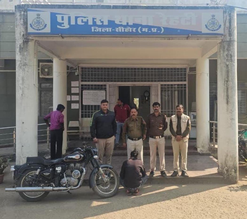 सीहोर। रेहटी पुलिस ने मोटर साइकिल चोरी के मामले में तत्परता दिखाते हुए एक शातिर चोर को गिरफ्तार करने में सफलता हासिल की है। पुलिस ने आरोपी के कब्जे से चोरी की गई कीमती रॉयल एनफील्ड बरामद कर ली है, जिसकी कीमत लगभग एक लाख रुपये आंकी गई है।