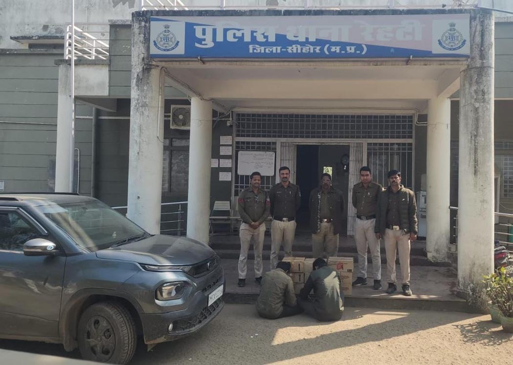 सीहोर। पुलिस अधीक्षक दीपक कुमार शुक्ला द्वारा जिले में अवैध गतिविधियों और नशे के खिलाफ चलाए जा रहे अभियान के तहत रेहटी पुलिस को एक बड़ी सफलता हाथ लगी है। पुलिस ने मुखबिर की सटीक सूचना पर कार्रवाई करते हुए अवैध रूप से शराब का परिवहन कर रहे दो आरोपियों को गिरफ्तार किया है। आरोपियों के कब्जे से भारी मात्रा में देशी और अंग्रेजी शराब सहित तस्करी में इस्तेमाल की जा रही कार जप्त की गई है।