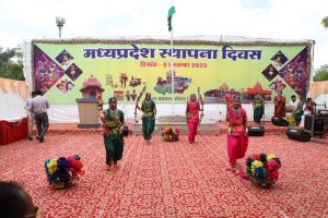 मध्यप्रदेश स्थापना दिवस समारोह के अवसर पर ब्लू वल्र्ड स्कूल द्वारा लोकगीत, सांदीपनि विद्यालय द्वारा लोक नृत्य तथा कन्या परिसर की छात्राओं के दल द्वारा जनजातीय संस्कृति की अनुपम छटा बिखेरने वाला समूह नृत्य प्रस्तुत किया गया। कार्यक्रम के आरंभ में संगीतिका संगीत महाविद्यालय के दल द्वारा मध्यप्रदेश गान एवं सेंट ऐन्स स्कूल के छात्र अगस्त गुप्ता द्वारा देशभक्ति एवं एकता पर आधारित गीत प्रस्तुत किया।
