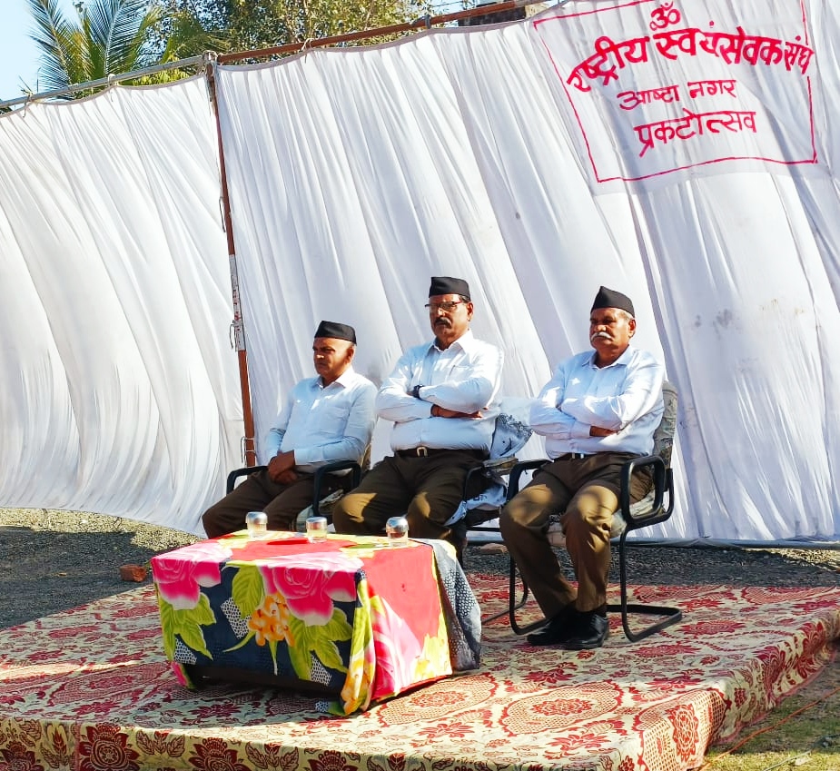 आष्टा। राष्ट्रीय स्वयं सेवक संघ न केवल एक संगठन है, बल्कि संघ व्यक्ति निर्माण की फैक्ट्री है। संघ में मानव निर्माण किया जाता है। संस्कार दिए जाते हैं। उपरोक्त कथन संघ के सह विभाग कार्यवाह संतोष तोमर ने आष्टा नगर के प्रकटोत्सव कार्यक्रम एवं मकर संक्रांति उत्सव के कार्यक्रम में कहे। कार्यक्रम का आयोजन स्थानीय मानस भवन में हुआ। कार्यक्रम की शुरूआत सूर्य नमस्कार से हुई। इसके बाद आसन, व्यायाम योग, दंडयोग, दंड संचालन, समता, सामूहिक समता, सामूहिक गीत का प्रदर्शन हुआ। कार्यक्रम में संघ के मुख्य अधिकारी जिला संघचालक अनिल पालीवाल, सह जिला संघचालक पारसमल सिंघवी तथा प्रबोधन एवं बौद्धिक सह विभाग कार्यवाह संतोष तोमर शामिल रहे। मुख्य वक्ता संतोष तोमर ने कहा कि संस्कारित व्यक्ति के द्वारा राष्ट्र निर्माण यह संघ का उद्देश्य है। संघ की दैनिक शाखा पर सूर्यनमस्कार, आसन, दंड संचालन, गीत, सुभाषित, वीर गाथाओं, गीत के माध्यम से व्यक्ति निर्माण का कार्य किया जाता है। संघ व्यक्ति निर्माण की फैक्ट्री है। देश की प्रगति के लिए समाज की सज्जन शक्ति को जगाना है। वर्तमान समय में भी ऐसी ताकतें सक्रिय हैं, जो देश के टुकड़े करने का सपना देखती हैं। सज्जन शक्ति जाग्रत होगी तो ऐसी ताकतें सफल नहीं होंगी। उन्होंने सज्जन शक्ति से आग्रह किया कि वह संघ में आए और साथ में मिलकर कार्य करें। संघ हिन्दू समाज के संगठन का प्रयास करता है। हिन्दू से अभिप्राय, इस देश में जन्मा व्यक्ति, जो इस देश की संस्कृति को अपना मानता है। हिंदू कभी साम्प्रदायिक नहीं होता। हिंदू समाज के जागरण से एक परिवर्तन आया है। अभी तक हिन्दू को सांप्रदायिक कहने वाले लोग भी स्वयं को हिन्दू बता रहे हैं। स्वयं को सच्चा हिंदू बताने की होड़ लग गई है। उन्होंने कहा कि आज हिंदू कहने में गर्व की अनुभूति होने लगी है। अधिकारी परिचय एवं नगर की भौगोलिक जानकारी नगर कार्यवाह गणेश सोनी दी। अमृतवचन कृष्णा व्यास तथा एकल गीत संदीप विश्वकर्मा ने प्रस्तुत किया। प्रकटोत्सव में नगर के 50 स्वयंसेवकों ने भाग लिया। कार्यक्रम में मुख्य रूप से जिला प्रचारक अतुल कुशवाह, सह विभाग शारिरिक प्रमुख राजेंद्र सोलंकी, विस्तारक प्रशांत गुप्ता, सजन सिंह, विकास चौरसिया, मुकेश गुलवानी, मनोहर साहू, पुरुषोत्तम चंदवानी, लोकेंद्र चौहान, कृष्णा व्यास, राहुल सांवरिया, राजू शर्मा, अवधेश पंडिया, नमन शर्मा, संदीप विश्वकर्मा, मनोज तिवारी, रमेशचंद्र भूतिया, रोहित भूतिया, कमलेश वर्मा, गजराज राजपूत, डीएस मालवीय, सेवालाल सोलंकी, जयश सोनी, ईश्वर मेवाड़ा, घनश्याम परमार, आयुष सोनी, देवकरण मालवीय, चर्चित मंडोरिया सहित सेकड़ों कार्यकर्ता उपस्थित रहे।