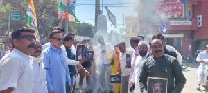 सीहोर: कांग्रेस ने किया काली पट्टी बांधकर मौनधारण, केंद्र सरकार का जलाया पुतला