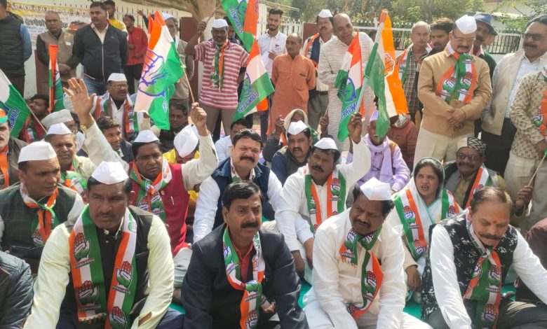 सीहोर : ट्रेनों को रोकने पटरियों पर लेटने पहुंचे कांग्रेसियों को अंदर जाने से रोका, दिया धरना