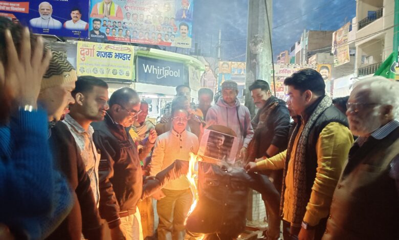 सीहोर। भाजपा के आह्वान पर सीहोर भाजपा नगर मंडल के द्वारा संसद के बाहर विपक्षी सांसदों द्वारा उप राष्ट्रपति जगदीप धनखड़ की मिमिक्री विवाद पर कोतवाली चौराहे पर तृणमूल कांग्रेस के सांसद कल्याण बैनर्जी का पुतला दहन किया। इस मौके पर भाजपा नगर मंडल अध्यक्ष और नगर पालिका के अध्यक्ष प्रिंस राठौर ने कहा कि  टीएमसी सांसद द्वारा उपराष्ट्रपति जगदीप धनखड़ की मिमिक्री करना और कांग्रेस सांसद राहुल गांधी द्वारा निंदा करने की बजाय उसका वीडियो बनाना कांग्रेस के चरित्र को दर्शाता है। उन्होंने करोड़ों जनता की भावनाओं का अपमान किया है देश चाहता है कि सोनिया गांधी और राहुल गांधी माफी मांगे क्योंकि उन्होंने हमारे सर्वोच्च संवैधानिक पद का अपमान किया है। कांग्रेस और गठबंधन लगातार भारत को अपमान करने का काम कर रही है क्योंकि इनके मन में भारत नहीं बल्कि इटली है इसलिए भारत के मान-सम्मान से इन्हें कोई लेना देना नहीं है। आज देश अपमानित हुआ है इन्हें देश से माफी मांगना चाहिए। बुधवार की शाम को भाजपा नेताओं ने शहर के कोतवाली चौराहे पर प्रदर्शन कर टीएमसी के सांसद ने संविधानिक पद पर बैठे उपराष्ट्रपति की मिमिक्री की। उसकी निंदा करने की जगह राहुल गांधी ने वीडियो बनाया। यह कांग्रेस का गंदा चरित्र है कि वह संविधानिक पद पर बैठे लोगों का अपमान करती है। संविधान की धज्जियां उड़ाती है। इसके खिलाफ आज भारतीय जनता पार्टी ने पूरे देश में प्रजातंत्र की रक्षा के लिए और संविधानिक पद पर बैठे लोगों के स्वाभिमान की रक्षा के लिए पुतला दहन किया है। भाजपा प्रजातंत्र की हत्या नहीं होने देगी। उन्होंने कहा कि आज प्रजातंत्र की रक्षा के लिए लिए भाजपा आज सडक़ पर है। पुतला दहन कार्यक्रम के दौरान भाजपा महामंत्री राजकुमार गुप्ता, सन्नी महाजन, प्रदीप बिजोरिया, ब्रजमोहन सोनी, कन्हैया लाल मालवीय, राजेश पाटीदार, आशुतोष त्यागी, आशीष पचौरी, सुनील राय, गुलशन जैन, राजेश परिहार, पुष्पलता राठौर, सोनू ठाकुर, मोहन अग्रवाल, राकेश शर्मा, रोहित यादव, जगदीश, नीरज सरपंच, धर्मेन्द्र परमार, विशाल पाटीदार आदि शामिल थे।
