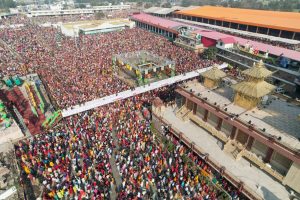 सीहोर। जिला मुख्यालय के समीप चितावलिया हेमा स्थित कुबेरेश्वर धाम में आयोजित सात दिवसीय रुद्राक्ष महोत्सव के दूसरे दिन आस्था का जनसैलाब उमड़ पड़ा। महोत्सव के दूसरे दिन पांच लाख से अधिक श्रद्धालुओं ने शिव महापुराण कथा का श्रवण किया। इस दौरान ग्रीन शिवरात्रि के संकल्प के साथ अंतर्राष्ट्रीय कथा वाचक पंडित प्रदीप मिश्रा के आह्वान पर देश भर में करीब एक करोड़ से अधिक पौधों का रोपण कर पर्यावरण संरक्षण का विश्व रिकॉर्ड जैसा संदेश दिया गया।