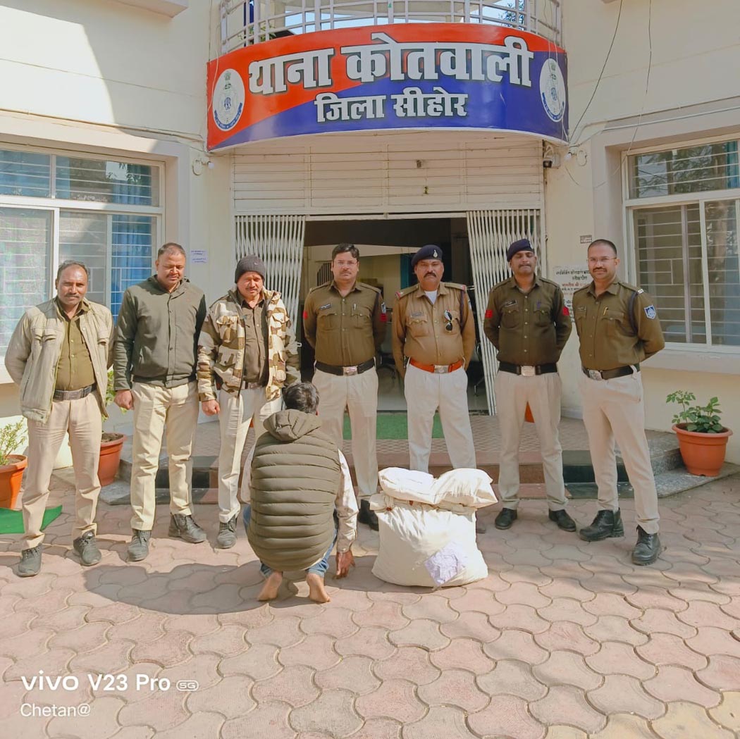 सीहोर। पुलिस अधीक्षक दीपक कुमार शुक्ला द्वारा दिए गए नववर्ष को लेकर दिशा निर्देशन में कोतवाली पुलिस ने बड़ी कार्रवाई की है। पुलिस ने ग्राम पिपलिया मीरा में एक खेत पर दबिश देकर भारी मात्रा में अवैध मादक पदार्थ गांजा जप्त किया है। आरोपी खेत की आड़ में गांजे की खेप छुपाकर बैठा था, जिसे पुलिस ने घेराबंदी कर रंगे हाथों दबोच लिया। जब्त किए गए 10 किलो 610 ग्राम गांजे की अनुमानित कीमत 1 लाख 6 हजार रुपये बताई जा रही है।