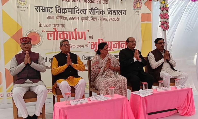 सीहोर। बुधनी तहसील के बगवाड़ा में नवनिर्मित सम्राट विक्रमादित्य सैनिक स्कूल के प्रथम चरण का लोकार्पण और द्वितीय चरण के निर्माण का भूमि पूजन कार्यक्रम गणमान्य अतिथियों की उपस्थिति में उत्साहपूर्ण माहौल में संपन्न हुआ। इस स्कूल का उद्देश्य छात्रों को एक सैनिक के रूप में तैयार कर देश सेवा के लिए समर्पित करना है।