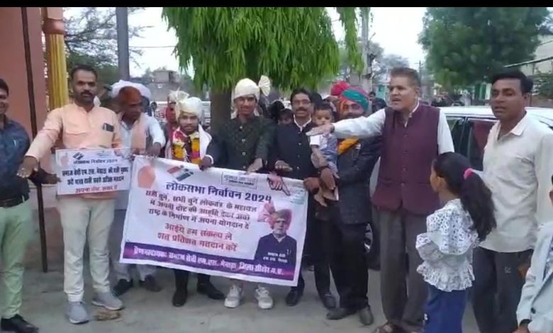 आष्टा के मोलूखेड़ी से शाजापुर के फतेहपुर गांव जाने वाली बारात सोमवार को मतदान में भाग लेने के बाद रवाना होगी। यहां पर दूल्हा बोला पहले मतदान करुंगा, इसके बाद दुल्हन को लेने जाऊंगा। आष्टा ब्लाक के ग्राम मोलूखेड़ी में मतदान के लिए दूल्हे सहित बारातियों ने पहले मतदान करने और उसके बाद दुल्हन घर लाने की शपथ ली। दूल्हे हेमंत मेवाड़ा ने बताया कि उनकी बारात 13 मई को शाजापुर के फतेहपुर जाना है। दिन में फेरे और अन्य वैवाहिक कार्यक्रम होना है। इसके चलते सुबह से ही बारात रवाना होना है, लेकिन अब उनके समेत सभी बाराती पहले मतदान रूपी यज्ञ में भाग लेंगे। इसके बाद बारात रवाना होगी।