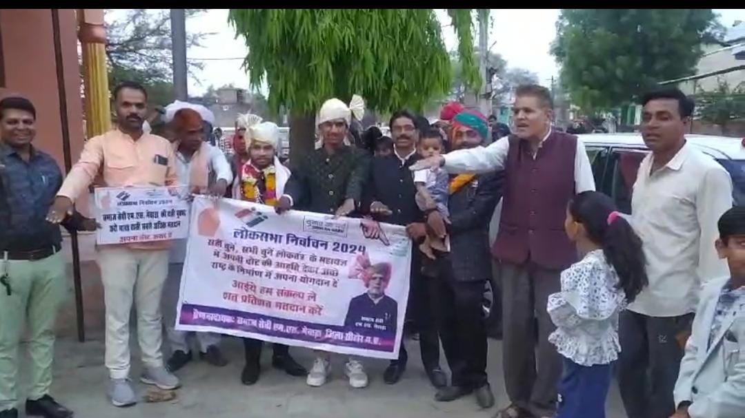 सीहोर। लोकसभा चुनाव के चौथे चरण में मध्य प्रदेश की आठ लोकसभा सीटों में से एक देवास लोकसभा सीट पर भी मतदान होगा। देवास-शाजापुर लोकसभा सीट के अंतर्गत सीहोर जिले की आष्टा विधानसभा सीट भी आती है और चौथे चरण में यहां पर भी मतदान होना है। मतदान को लेकर जहां जिला प्रशासन द्वारा लगातार स्वीप गतिविधियों के माध्यम से मतदाताओं को जागरूक किया जा रहा है तो वहीं सीहोर जिले के किसान और समाजसेवी एमएस मेवाड़ा भी लगातार गांव-गांव पहुंचकर मतदाताओं को जागरुक कर रहे हैं। उन्होंने पहले इछावर विधानसभा में जहां बैलगाड़ी के माध्यम से मतदाता जागरूकता कार्यक्रम चलाया तो वहीं अब आष्टा विधानसभा के ग्राम मोलूखेड़ी में निकल रही एक बारात को भी मतदान की शपथ दिलाई। इस दौरान दूल्हे ने शपथ ली कि पहले वह मतदान करेगा उसके बाद ही बारात लेकर जाएगा। इस दौरान अन्य लोगों ने भी शत प्रतिशत मतदान की शपथ ली।