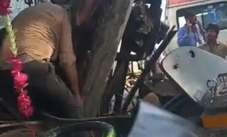 गाय को बचाने के प्रयास में पेड़ से टकराई बस
