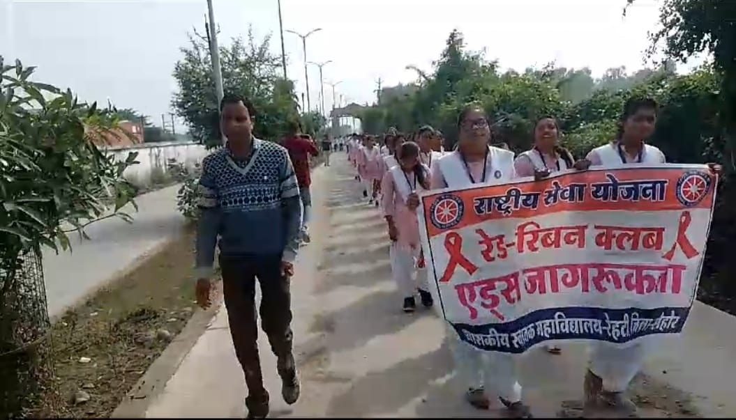 रेहटी। विश्व एड्स दिवस पखवाड़े के अंतर्गत शासकीय महाविद्यालय रेहटी की राष्ट्रीय सेवा योजना इकाई द्वारा नगर में जागरूकता रैली निकाली गई। रेड रिबन क्लब के तत्वावधान में 1 से 15 दिसंबर तक एड्स पखवाड़े का आयोजन किया जा रहा है। इस बार विश्व एड्स दिवस की थीम लेट कम्यूनिटीज लीड रखी गई है। इसके तहत एड्स की रोकथाम में समुदाय को अग्रिम पंक्ति में रखने एवं प्रोत्साहित करने के उद्देश्य से महाविद्यालय की प्राचार्य डॉ अंजली गढ़वाल के संरक्षण में रासेयो कार्यक्रम अधिकारी डॉ पुनीत कुमार मालवी एवं डॉ मनमोहन द्विवेदी के निर्देशन में एड्स जागरूकता रैली का आयोजन किया गया। रैली महाविद्यालय परिसर से शुरू हुई, जो नगर के मुख्य मार्गों से निकाली गई। इस दौरान लोगों को एड्स के प्रति जागरूक किया गया। नगर में बड़े उत्साह के साथ लोगों ने रैली का उत्साहवर्धन किया। इसके बाद कन्या शाला परिसर के समीप स्वयंसेवकों ने मानव श्रृंखला बनाकर एड्स के नारे लगाए। उक्त रैली का आयोजन वरिष्ठ स्वयंसेवक शेखर पैठारी, प्रियांश लोट, आशीष यादव, सनी चौहान के नेतृत्व में हुआ। रैली में स्वयंसेवकों ने एड्स के नारे लगाकर लोगों को एड्स के प्रति जागरूक रहने हेतु आव्हान किया।