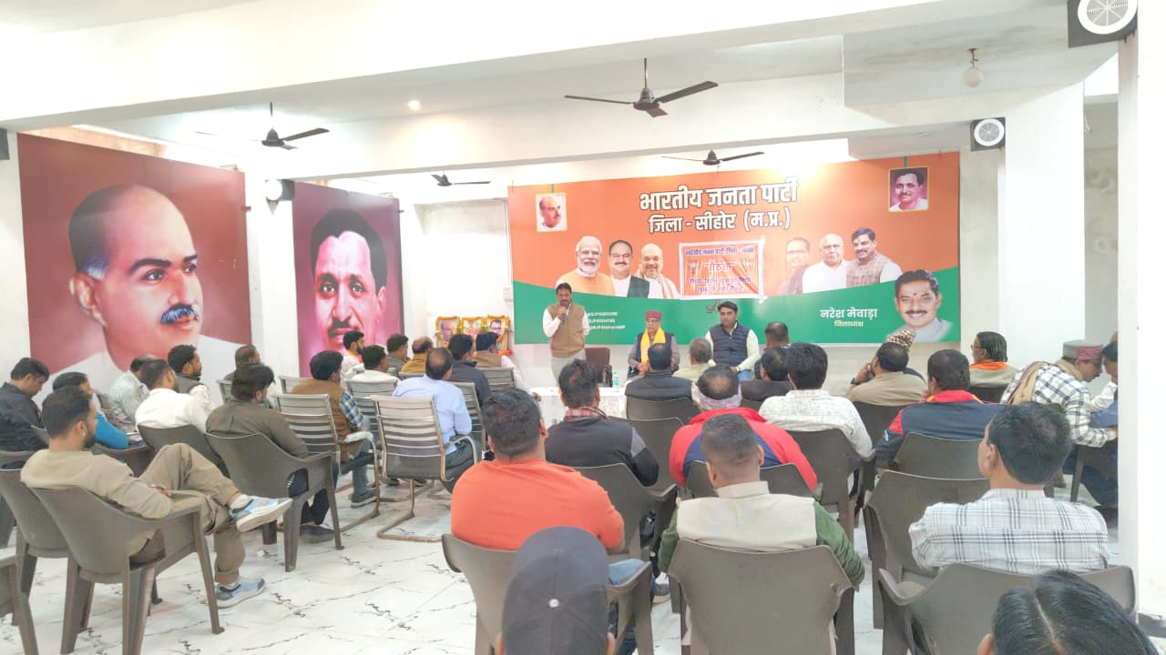 सीहोर। भारतीय जनता पार्टी जिला कार्यालय पर शनिवार को मतदाता सूची के विशेष गहन पुनरीक्षण अभियान को लेकर एक महत्वपूर्ण बैठक आयोजित की गई। इस बैठक में भोपाल संभाग प्रभारी और नागदा-खाचरौद विधायक डॉ. तेजबहादुर सिंह चौहान मुख्य रूप से उपस्थित रहे और उन्होंने सभी पदाधिकारियों तथा कार्यकर्ताओं को अभियान में सक्रियता से जुटने के निर्देश दिए।