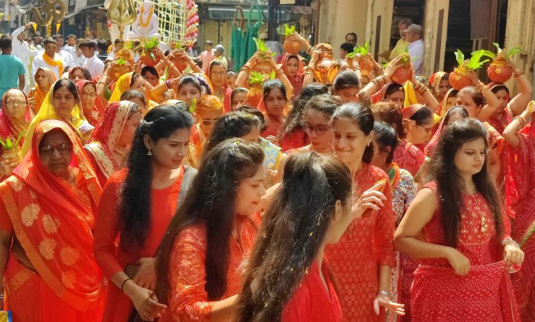 शनिवार को शहर के बड़ा बाजार से सुबह दस बजे चल समारोह में शहर के सभी कथा वाचक के युवाओं और महिलाओं में खासा उत्साह देखा गया। एक ओर जहां जगह जगह शोभा यात्रा पर पुष्प वर्षा की गई वहीं दूसरी ओर कई स्थानों पर स्वागत भी किया गया। कलश यात्रा शहर के बड़ा बाजार से नमक चौराहा, गांधी रोड, चरखा लाइन और खजांची लाइन आदि स्थानों से होकर मंदिर पर पहुंची जहां पर श्रद्धालुओं ने यात्रा में शामिल कथा वाचकों का सम्मान किया। कलश यात्रा अध्यक्ष ब्रजमोहन सोनी, मंदिर समिति के अध्यक्ष मनोज जैन आदि ने कथा में शामिल कथा वाचकों का सम्मान किया।