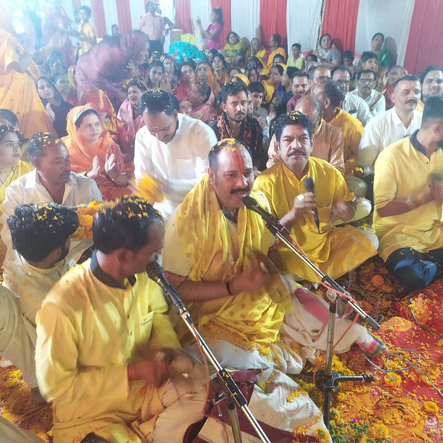 सीहोर। वि_लेश सेवा समिति के तत्वाधान में हर माह राधा नाम मासिक कीर्तन का आयोजन देर रात्रि को शहर के पोस्ट आफिस के समीप चौरसिया परिवार के सहयोग से किया गया। इस मौके पर भागवत भूषण पंडित प्रदीप मिश्रा ने राधा के शानदार कीर्तन और भजनों की प्रस्तुतियां दी। किशोरी कुछ ऐसा इंतजाम हो जाए। राधे राधे रटो, चले आएंगे बिहारी, जुबा पे राधा राधा राधा नाम हो जाए और हमे राधा रानी तेरे नाम का सहारा, नाम का सहारा तेरे नाम का सहारा आदि अनेक भजन सुनाए। इस संबंध में मिली जानकारी के अनुसार पिछले कई सालों से विठलेश सेवा समिति के तत्वाधान में हर माह रात्रि सात बजे से नौ बजे तक राधा नाम मासिक कीर्तन का आयोजन किया जाता है। इसी कडी में शहर के पोस्ट आफिस संजय टाकिज के पीछे स्थित चौरसिया परिवार के सहयोग से समिति के सैकड़ों की संख्या में श्रद्धालुओं ने भगवान श्रीकृष्ण और राधा के भजनों पर आस्था और उत्साह के साथ नृत्य किया।