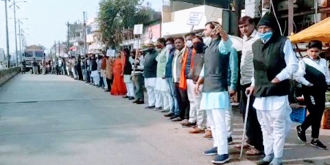 रेहटी। प्रधानमंत्री नरेंद्र मोदी के काफिले को रोककर विवादों में आई पंजाब सरकार के खिलाफ देशभर में विरोध प्रदर्शन किया जा रहा है। इसी विरोध प्रदर्शन की कड़ी में भारतीय जनता पार्टी जिला सीहोर के अन्य पिछड़ा वर्ग मोर्चा ने भी विरोध स्वरूप मानव श्रृंखला बनाकर पंजाब सरकार के खिलाफ नारेबाजी की और पंजाब सरकार को बर्खास्त करने की मांग की। भाजपा अन्य पिछड़ा वर्ग मोर्चा के जिला अध्यक्ष बनवीर सिंह चंद्रवंशी एवं भाजपा सलकनपुर मंडल के अध्यक्ष प्रेमनारायण मीणा के नेतृत्व में हुए इस विरोध प्रदर्शन में भाजपा के पदाधिकारियों कार्यकर्ताओं सहित अन्य लोगों ने भी बढ़-चढ़कर हिस्सा लिया। इस मौके पर जिलाध्यक्ष बनवीर सिंह चंद्रवंशी ने कहा कि पंजाब सरकार जब देश के प्रधानमंत्री को सुरक्षा मुहैया नहीं करा सकती तो वह राज्य के नागरिकों की सुरक्षा की क्या ग्यारंटी देगी। मंडल अध्यक्ष प्रेमनारायण मीणा ने कहा कि पंजाब सरकार हिटलरशाही से काम कर रही है। ऐसी सरकार को सत्ता में रहने का कोई अधिकार नहीं है।
