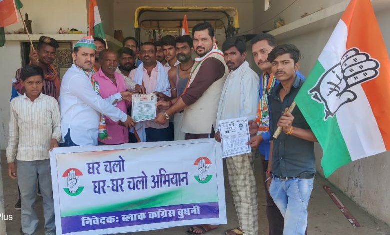 रेहटी। कांग्रेस द्वारा घर चलो, घर-घर चलो अभियान चलाया जा रहा है। इसी कड़ी में बुधनी ब्लॉक के अभियान प्रभारी विपुल यादव एवं कांग्रेस नेता अर्जुन शर्मा निक्की के नेतृत्व में कांग्रेस नेता एवं कार्यकर्ता रेहटी तहसील के आंवलीघाट पहुंचे और घर-घर जाकर कांग्रेस सरकार के 15 माह में किए गए कार्यों कोे बताया। इस दौरान कांग्रेस नेताओं ने पार्टी की रीति-नीतियोें से भी ग्रामवासियों को अवगत कराया।